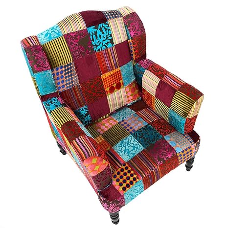 Patchwork Sessel Ohrensessel Mit Armlehnen Samt Bunt Amazon De